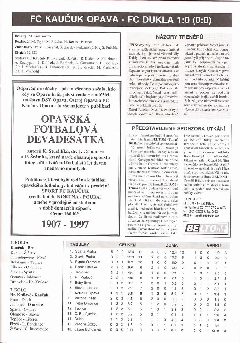 Statistiky 1996 – 1997 (1.liga)
