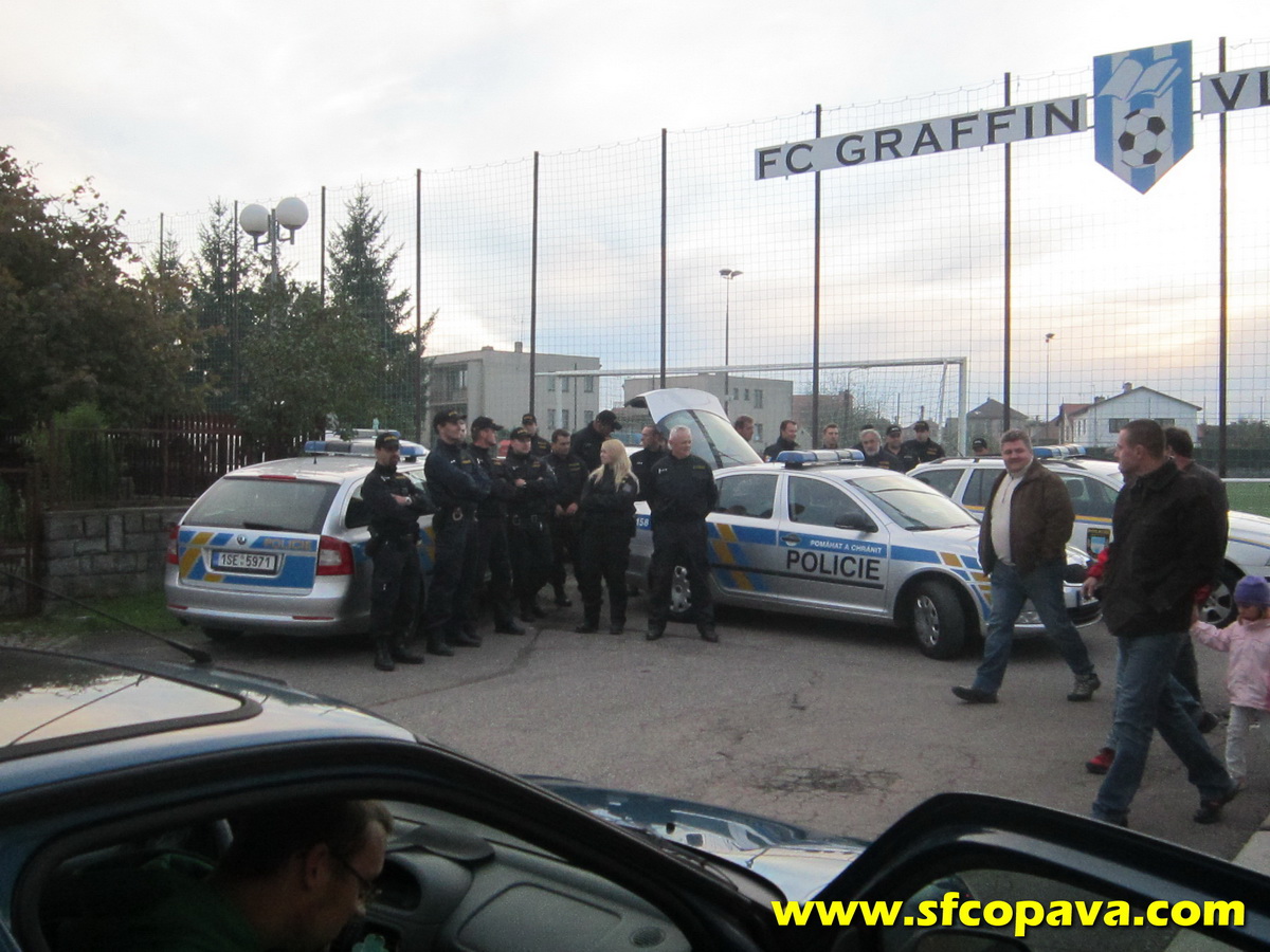 Výjezd do Znojma vychází k nelibosti mnoha fanoušků na pátek. Ne každý si může vzít v práci volno a tak nečekáme nějakou početnou návštěvu. Na rozdíl od brněnské zásahovky, která se dočetla na internetu o dvou autobusech, které mají do Znojma přijet. J Je opravdu s podivem, že PČR stačí nějaký nesmyslný příspěvek na nějakém fóru a hned se toho chytnou. U stadionu to vypadalo, že na jednoho fanouška zde jsou připraveni zhruba 3 až 4 policajti. Na začátku zápasu nás v sektoru hostů bylo 18 opavských fans s tradiční vlajkou Opaváci a jedou menší. Okolo 5. minuty zápasu přijíždí ještě jedno auto a zvyšuje tak náš počet na 23. Opozdilci vyvěsili vlajku Fans Suché Lazce a přidali se k našemu supportu. Po chvilce se u našeho sektoru objevuje také jeden kolega z WKS, který přijel na jih Moravy sám vlakem až z Olesznice (pozn.: fanklub WKS)!!! Klobouk dolů. Náš konečný počet tedy čítal 24 příznivců SFC.