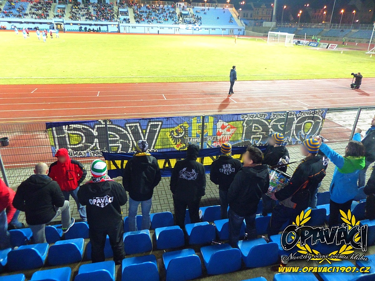 Na závěr podzimu, resp. na úvod jarní části sezony, jsme přivítali na domácím hřišti Baník Most. Vzhledem k tomu, že se v Opavě hrál od 18:00 hodiny basket, tak byl výkop zápasu netradičně posunut už na 15:30. Tento fakt, a také to, že už byla docela zima poznamenal celkovou návštěvu v Městských sadech. Do ochozů si našlo cestu pouhých 1532 diváků, což byla nejnižší návštěva v dosavadní sezoně. Do Opavy přijeli také hostující fanoušci. Z Mostem přicestovalo 7 fans, kteří nevyvěsili žádnou vlajku a prakticky jsme o nich celý zápas ani nevěděli.