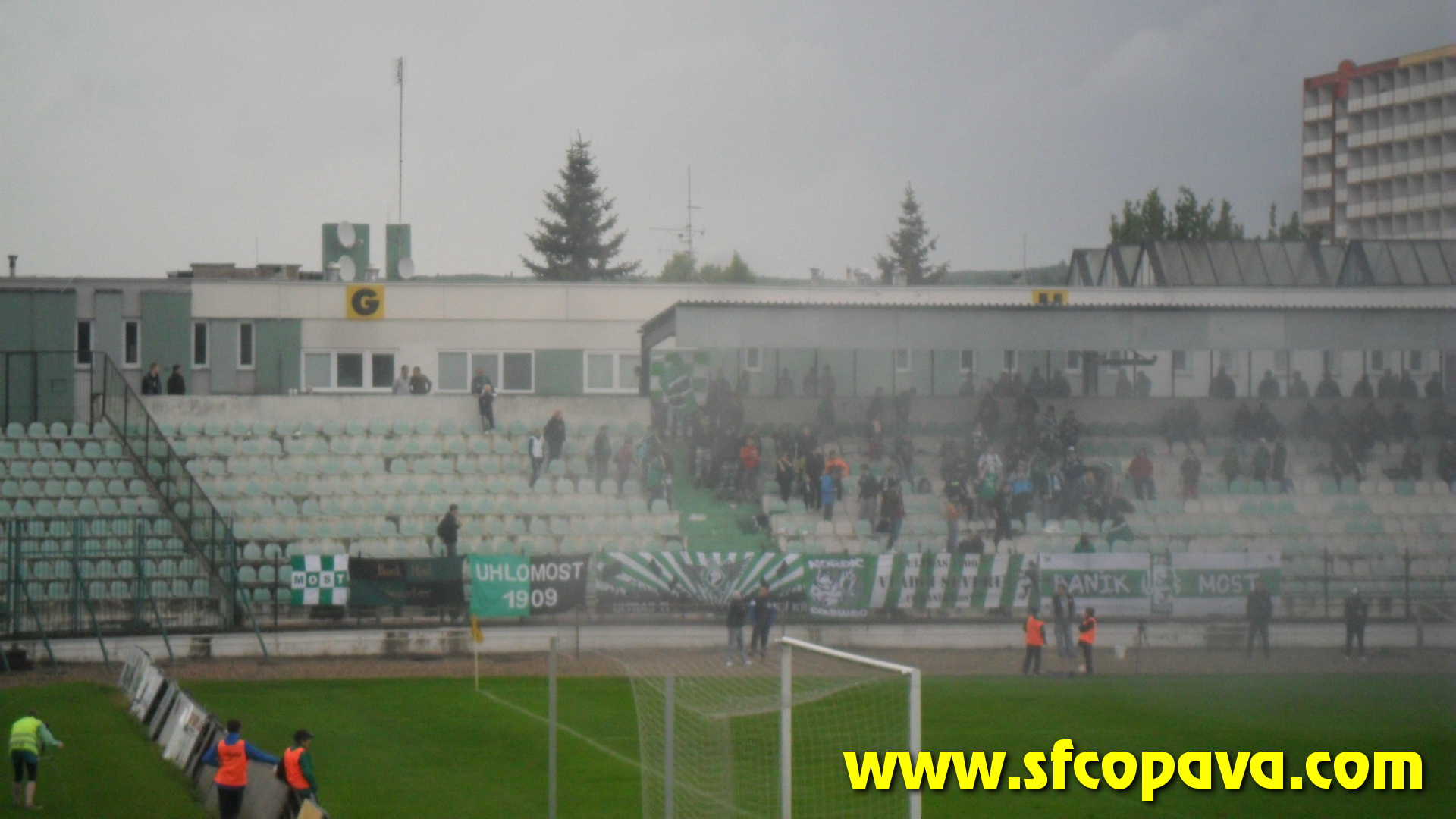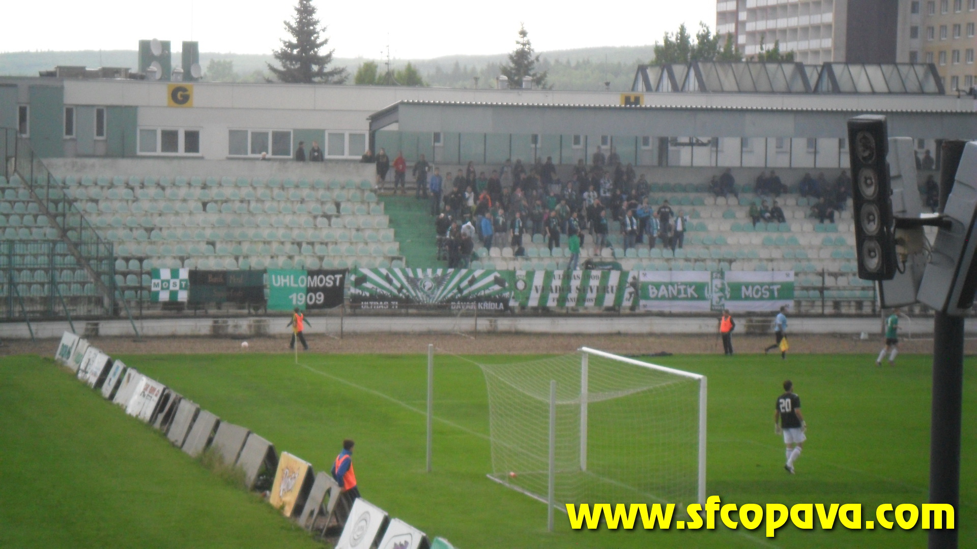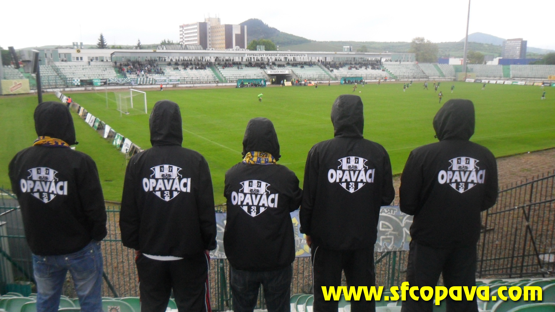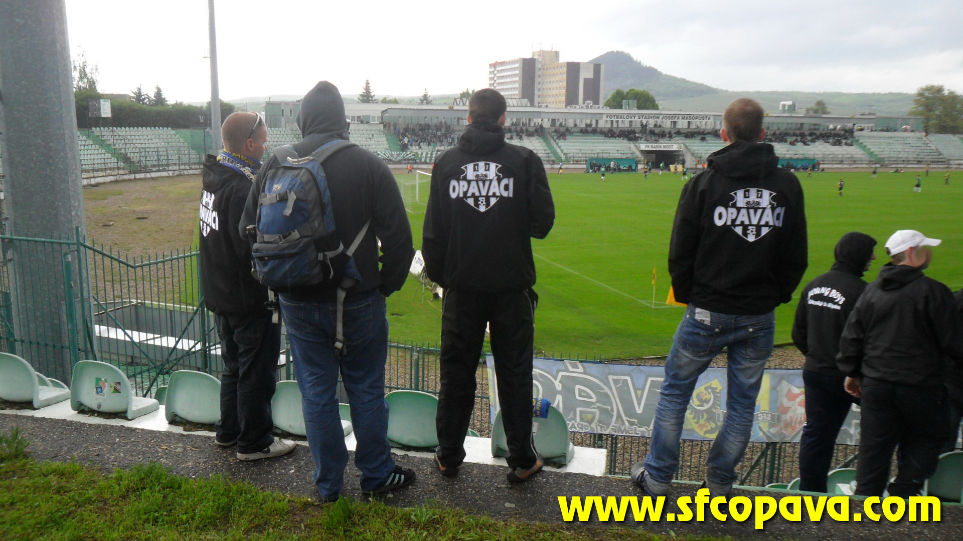 V prvním poločase bylo k vidění pár závarů před naší brankou, ale když opomenu penaltu, kterou domácí neproměnili, tak dvě největší šance jsme si připravili my. Dvakrát stříleli naši hráči v osamocené pozici zhruba z oblasti penaltového puntíku, ale v obou případech nastřelili gólmanovi nohy. V úvodu druhého poločasu jsme velmi rychle inkasovali a začali přicházet další branky. Po třetí z nich situaci neunesla většina našeho sektoru a opustila na protest stadion. Je pravda, že z našeho pohledu se nebylo na co dívat. V sektoru nás zůstalo posledních 10 masochistů. Ale ani tento zbytek fans nevydržel až do konce. V 85.minutě jsme se poprvé v druhém poločase hlasově projevili a to skandováním pokřiku „třetí liga taky liga Opava“. Po té jsme sbalili vlajku a opustili stadion. Ještě za bránou stadionu jsme slyšeli jásot domácích, z čehož jsme usoudili, že jsme inkasovali pátý gól. S domněním, že jsme prohráli 5:0 jsme opouštěli Most. Až po cestě zpět jsme se teprv dozvěděli, že jsme ještě před tím jeden gól vstřelili a tak výsledek zápasu byl nakonec 5:1 pro domácí. Ti se touto výhrou zachránili a nás definitivně poslali do MSFL.