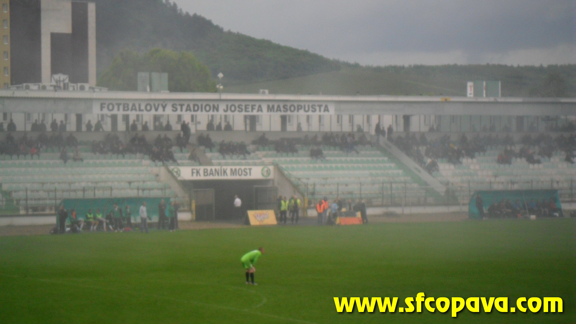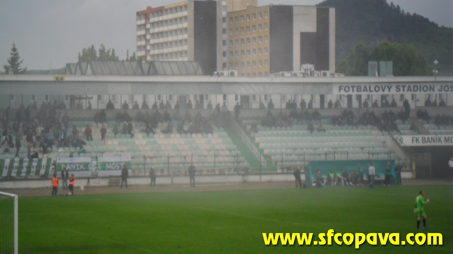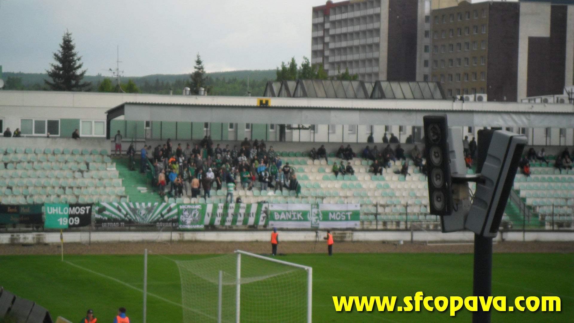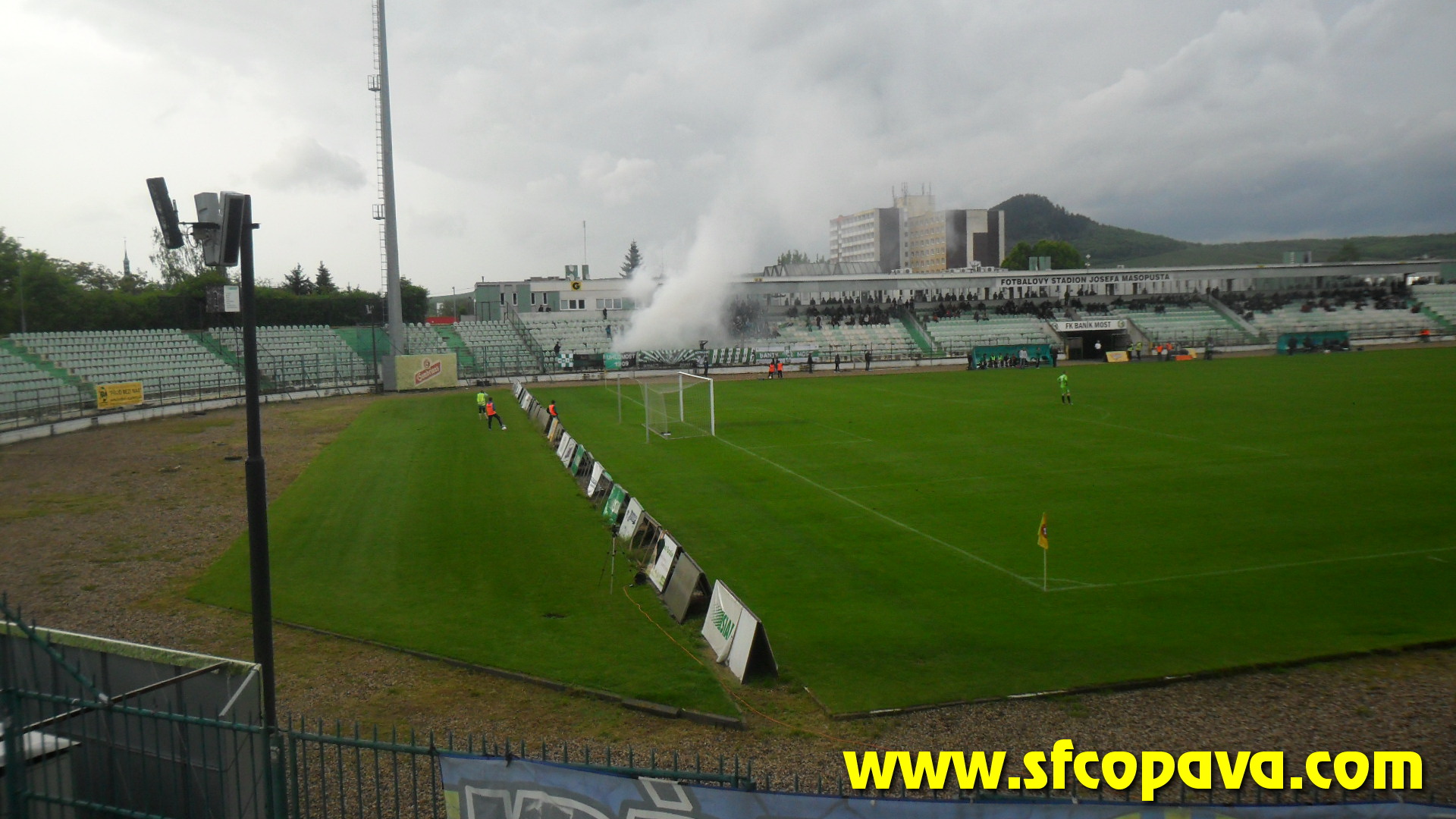 V prvním poločase bylo k vidění pár závarů před naší brankou, ale když opomenu penaltu, kterou domácí neproměnili, tak dvě největší šance jsme si připravili my. Dvakrát stříleli naši hráči v osamocené pozici zhruba z oblasti penaltového puntíku, ale v obou případech nastřelili gólmanovi nohy. V úvodu druhého poločasu jsme velmi rychle inkasovali a začali přicházet další branky. Po třetí z nich situaci neunesla většina našeho sektoru a opustila na protest stadion. Je pravda, že z našeho pohledu se nebylo na co dívat. V sektoru nás zůstalo posledních 10 masochistů. Ale ani tento zbytek fans nevydržel až do konce. V 85.minutě jsme se poprvé v druhém poločase hlasově projevili a to skandováním pokřiku „třetí liga taky liga Opava“. Po té jsme sbalili vlajku a opustili stadion. Ještě za bránou stadionu jsme slyšeli jásot domácích, z čehož jsme usoudili, že jsme inkasovali pátý gól. S domněním, že jsme prohráli 5:0 jsme opouštěli Most. Až po cestě zpět jsme se teprv dozvěděli, že jsme ještě před tím jeden gól vstřelili a tak výsledek zápasu byl nakonec 5:1 pro domácí. Ti se touto výhrou zachránili a nás definitivně poslali do MSFL.