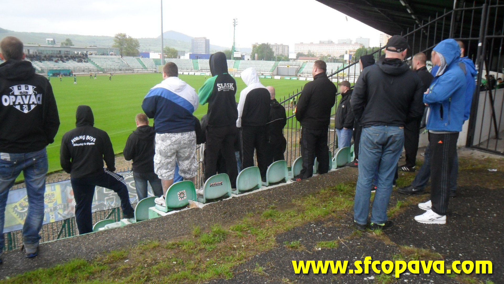 Na stadionu už bylo přítomno asi 26 našich příznivců. Mezi nimi nechyběli také 4 fans z Wroclawi. Celkový počet opaváků , který se objevil v sektoru hostí byl 36. Tento počet byl pouze o 2 nižší než náš nejpočetnější výjezd na půdu tohoto soupeře, který se datuje do sezony 2008/2009. Vyvěsili jsme jednu vlajku Opaváci. Co se týče našeho projevu, tak ten byl nejhorší za celou sezonu. Svou roli hrála určitě i naše situace, ve které se celý opavský fotbal nachází. Jen občas jsme zaskandovali nějaká hesla na podporu SFC. Místní gastronomický koutek stál taky za to. Velmi dobré klobásy, klasické, tak i bílé. Překvapili také halušky se zelím. Gurmáni si přišli na své. 🙂