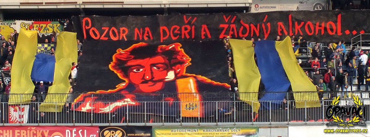 Na podzim přicestovalo do Opavy zhruba 110 olomoučáků. Bylo jasné, že tento počet nemůže být pro nás měřítkem, a že v tomto ohledu olomoucké určitě předčíme. Otázka byla o jaký počet to bude. Nakonec se v Olomouci objevilo 380 příznivců SFC. Jestli to je málo nebo moc necháme na posouzení každého z Vás, každopádně v opavském táboře panuje s tímto počtem spokojenost. Přijelo nás také podpořit 11 přátel z Wroclawi. Stejně jako sigmáci, tak i my jsme se na tento zápas pečlivě připravili. Z naší strany bylo k vidění několik prezentací. Ať už to bylo rozdělení sektoru na dvě strany a vzájemné se překřikování, nebo žluto-modré mávačky, tak byly k vidění také dvě choreografie. Ta první byla reakcí na prohlášení nové olomoucké chuligánské skupiny, které bylo celkem trapné a na Olomoučáky hlavně hodně suverénní s ohledem na jejich kvality. U druhé prezentace se jednalo o kartoniádu složenou ze znaků našeho klubu a vše doplněno nápisem Jedině Slezský.
