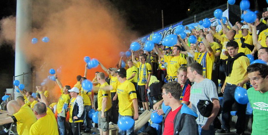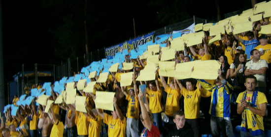 Hned v druhém kole jsme zajížděli na půdu dalšího exligisty Brna. Skoro všichni fanoušci v sektoru hostí byli oblečeni do žlutých trik. Roztáhli jsme choreografii složenou ze sedmi 2,5m širokými pásy, na kterých byl vyobrazen náš zaplněný stadion. K tomu měl být roztažen nápis: Patříme do ligy!!!. Vzhledem k velikosti sektoru se to nepovedlo roztáhnout najednou, a proto tento nápis následoval až po té.
