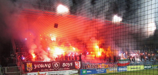 V posledním zápase jsme hostili Brno. Odpálili jsme 60 rací, 6 žlutých dýmovnic a asi 100 malých stroboskopů.